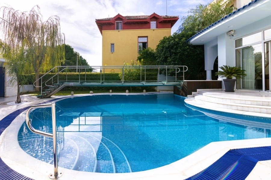 Γλυφάδα, πολυτελής επιπλωμένη μονοκατοικία 600 τ.μ. με μεγάλο κήπο 300 τ.μ. και πισίνα, κατασκευής 2000, με πρόσφατη πολύ προσεκτική ανακαίνιση. Ωραίες εσωτερικές διαρρυθμίσεις και πολύ καλές επιλογές υλικών. Αποτελείται από 2 σαλόνια με τζάκια, τραπεζαρία, χώρος εργασίας, 2 κουζίνες εξοπλισμένες με ηλεκτρικές συσκευές, 7 άνετα υπνοδωμάτια ( 2 en suite bathrooms ), 6 μπάνια και wc. Η θέρμανση είναι με κλιματισμό, διπλά τζάμια, πόρτα ασφαλείας και συναγερμός. Υπάρχει αίθουσα μπιλιάρδου, κελάρι κρασιών, αποθήκη και υπόγεια θέση στάθμευσης αυτοκινήτου. saouna. Επίσης, εχει studio με ανεξάρτητη είσοδο. Επιτρέπονται τα κατοικίδια. Βρίσκεται σε πολύ ήσυχη και ωραία διαμορφωμένη περιοχή, σε απόσταση 250μ. απο την θάλασσα και κοντά στο κέντρο της Γλυφάδας. Το στίγμα στο χάρτη δείχνει την ευρύτερη περιοχή και όχι την ακριβή διεύθυνση. Ενοίκιο 18.000€. Για περισσότερες πληροφορίες για το συγκεκριμένο ακίνητο ή παρόμοια ακίνητα παρακαλώ επικοινωνήστε μαζί μας στα τηλέφωνα 210/9658520 ή επισκεφθείτε την σελίδα μας www.invistarealestate.gr