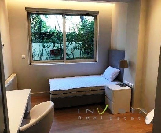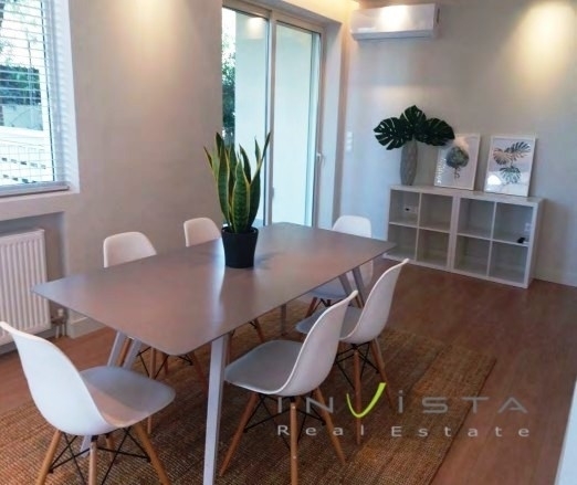 Kato Glyfada, ground floor furnished apartment 140 sq.m. with garden, 300m. from the sea, constructed in 2008, renovated. It consists of living room, kitchen, 2 bedrooms, bathroom and wc. It has autonomous heating with natural gas, air conditioners, double glazed windows, wooden floors and security door. Storage room and underground parking space. Also, shared gym and playground. It is located in a guarded residential complex, in a very nice landscaped area, close to transport - schools - market. The dot on the map shows the wider area and not the exact address. Rental price €3.600. For more information about this property or similar properties, please contact us at 210/9658520 or visit our website www.invistarealestate.gr