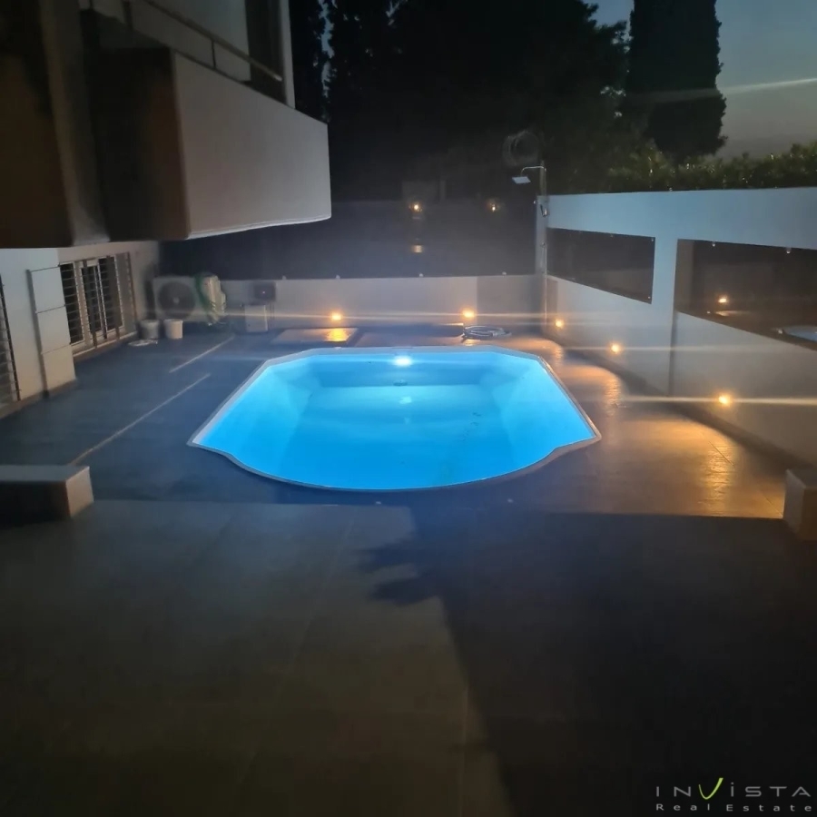 Excellent maisonette of 255 sq.m., on three levels, constructed in 2004, with swimming pool and garden for exclusive use. The house has a spacious living room, dining area and large kitchen equipped with some electrical appliances. There are four comfortable bedrooms, three bathrooms and wc. There is an internal elevator. The property has autonomous heating with natural gas, fireplace, air conditioning and double glazing with screens for soundproofing and thermal insulation. Security and energy efficiency are also at the forefront, with security door, solar water heater and alarm system. Pets are allowed. The apartment is accompanied by storage room for additional storage space and two parking spaces (closed and open). The location on the map refers to the wider area, for reasons of discretion. Rent 7,000€. For more information or for similar properties, visit our website at www.invistarealestate.gr or contact us at 210/9658520.