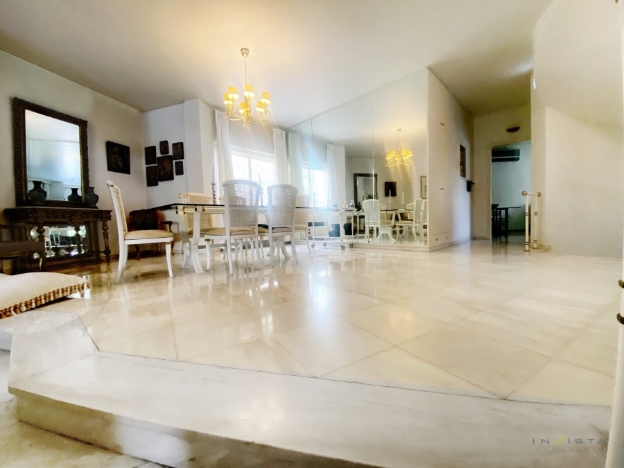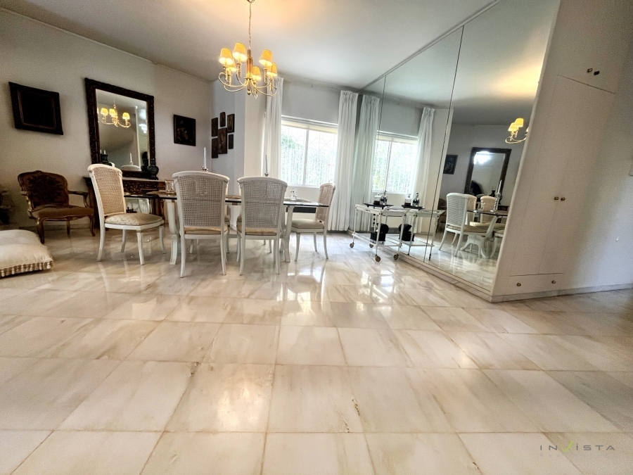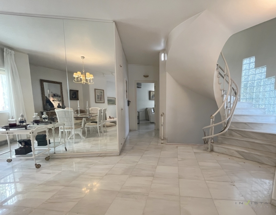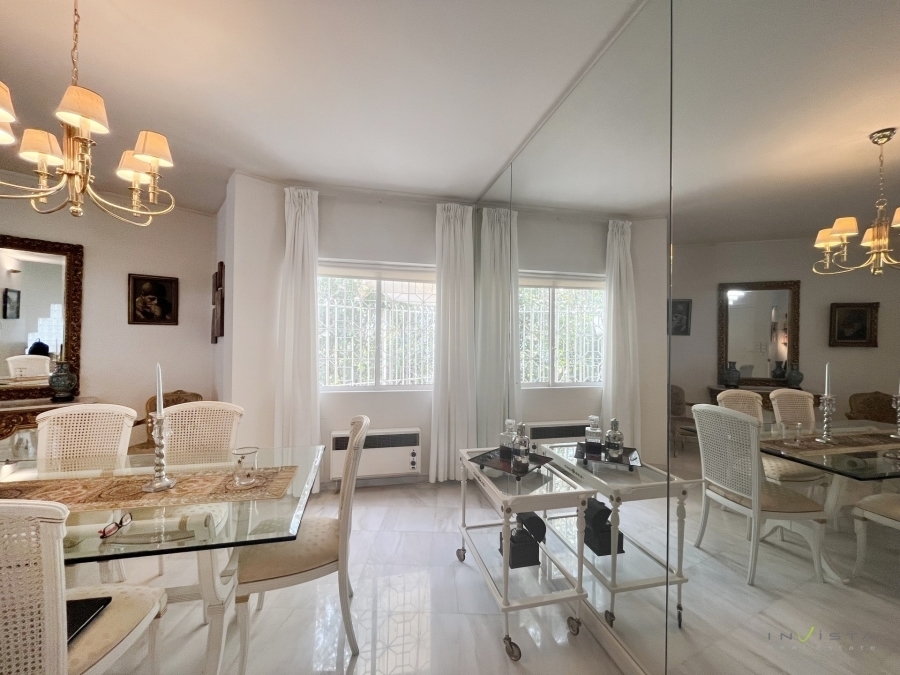 Kato Glyfada, luxury detached house 435 sq.m. on a 455 sq.m. plot. The property was constructed in 1989. The layout of the spaces offers comfort and functionality, while construction materials of exceptional quality have been selected. The residence features a spacious and bright living room with a fireplace, as well as a comfortable kitchen with a sitting area and fireplace. There is also a guest WC on this level. On the first floor there are three large bedrooms (one master bedroom with walk-in closet and en-suite bathroom), an office, one additional bathroom serving the other two bedrooms and a kitchenette. The semi-basement includes a large area that can be used as an auxiliary room or playroom, as well as three (out of a total of six) closed parking spaces. Additionally, there is a bathroom with a shower and a storage room. Heating is oil-based; the property is equipped with air conditioning, double-glazed windows and a solar water heater. It also features a security door and an alarm system. Finally, there is a remaining building allowance of 80 sq.m. and possibility of installing an elevator. Please note that the map pin indicates the wider area. Asking price: €1,650,000. Visit our website www.invistarealestate.gr or contact us at +30 210 9658520 for more information about this property or similar properties.
