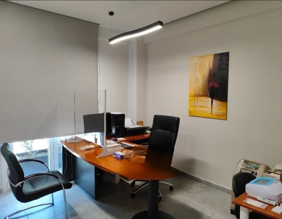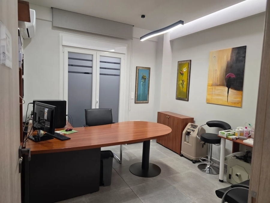Ground-floor, furnished office 50 sq.m., located in a shared professional space with a pulmonology and nutrition clinic, ideal for healthcare professionals or related activities. It is equipped with air conditioning, alarm system, security cameras, and fire safety system.The property features two WCs, one of which is accessible for people with disabilities (AMEA). The property is situated in a highly central place with excellent visibility, in an area of high commercial exposure. Access is particularly easy both by private vehicle and public transportation, and it is close to the local market, shops and banks. The map pin indicates the wider area and not the exact address of the property. Rental price €750. Visit our website: www.invistarealestate.gr or contact us at +30 210 965 8520 for more information about this property or similar listings.