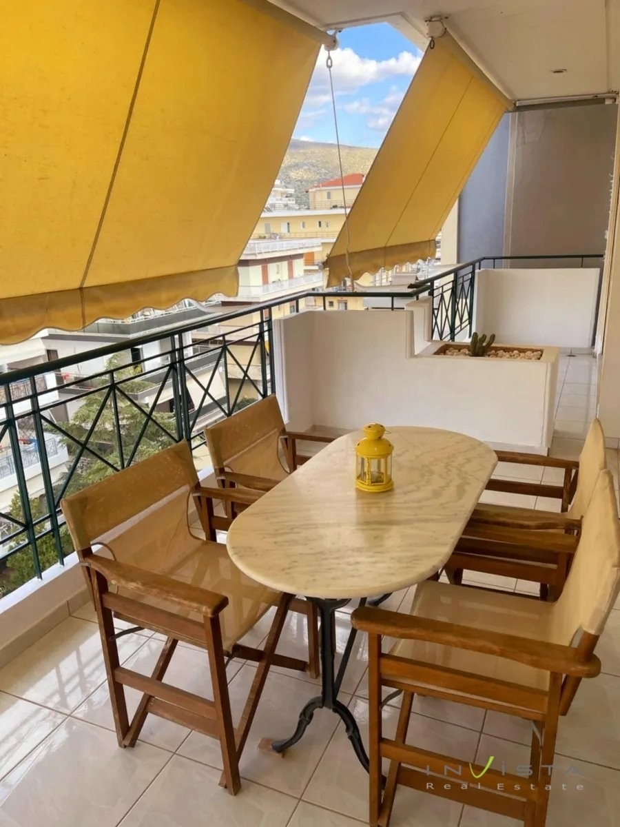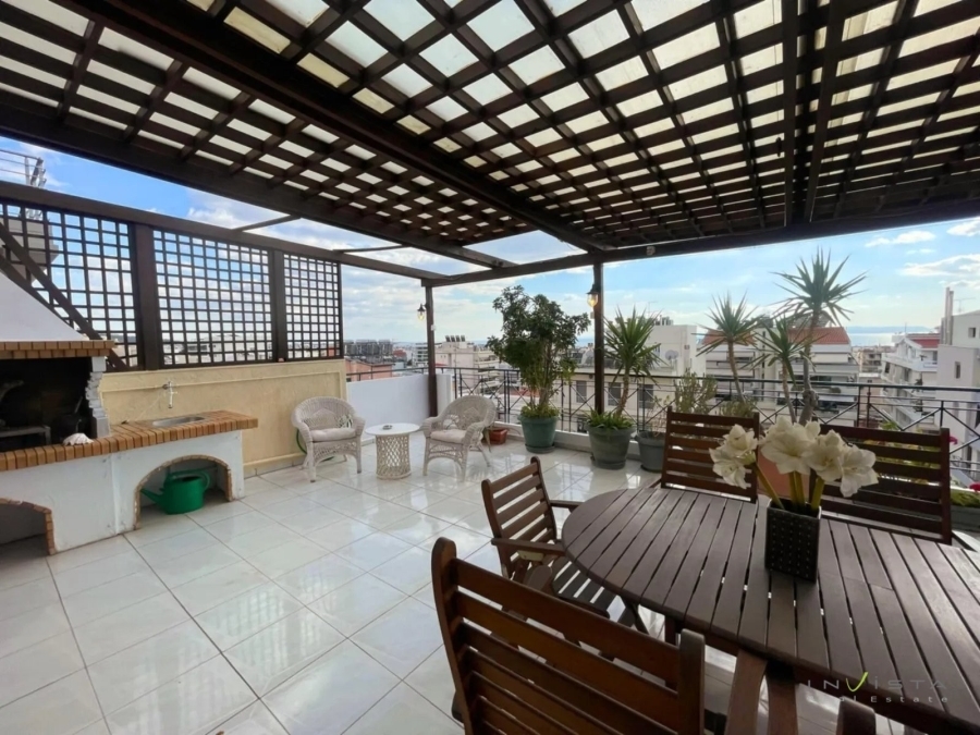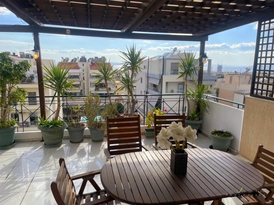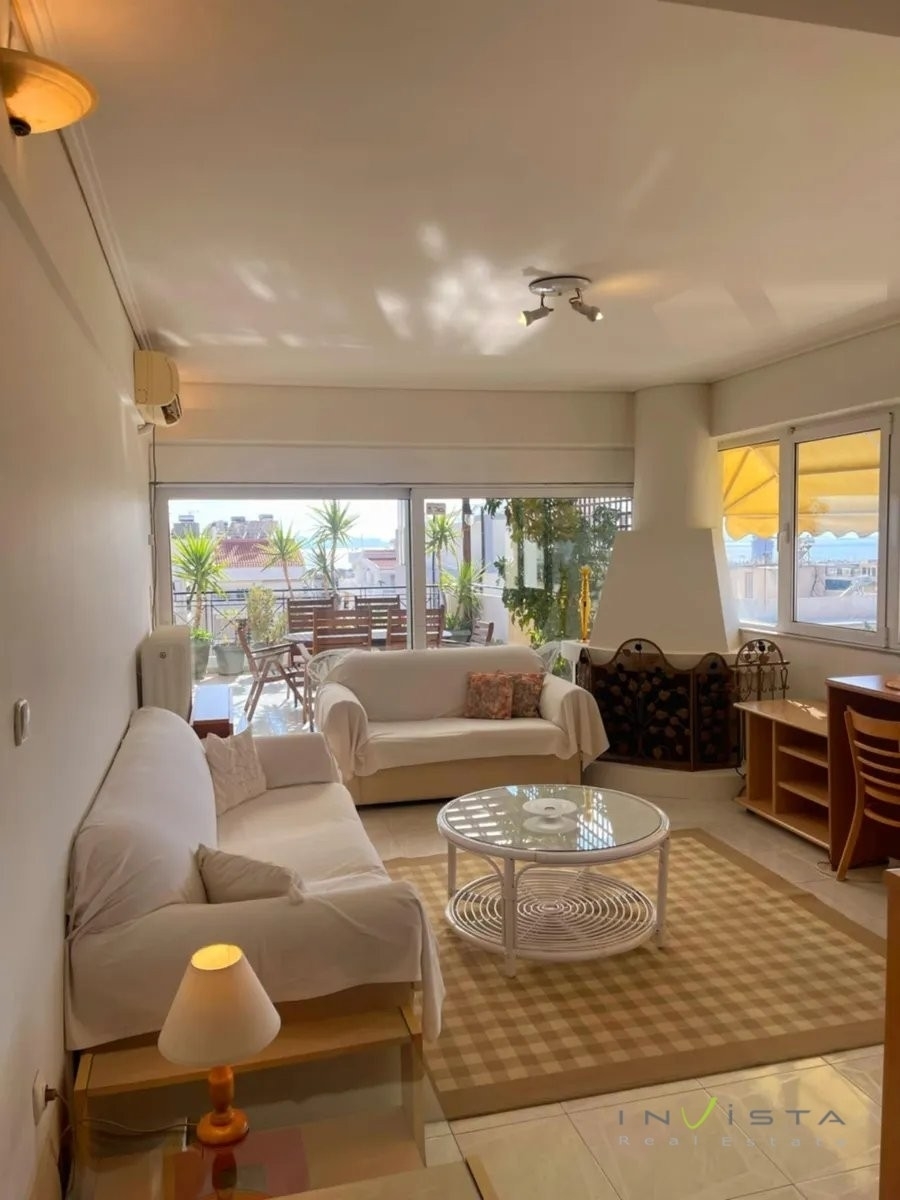 Glyfada, furnished penthouse apartment 75 sq.m. with sea view, on the 5th floor, constructed in 2006. It has large terrace approximately 60 sq.m. and consists of living room, kitchen equipped with electrical appliances, two bedrooms with oak floors and bathroom. It has autonomous heating, fireplace, air conditioning, double glazing, electric roller shutters. It also has security door and underground parking space. The apartment is close to public transport, schools and the local market. Pets are welcome. The mark on the map refers to the wider area and not to the exact location of the property. Rent €1,100. Visit our website www.invistarealestate.gr or contact 2109658520 for more information about the property or similar properties.