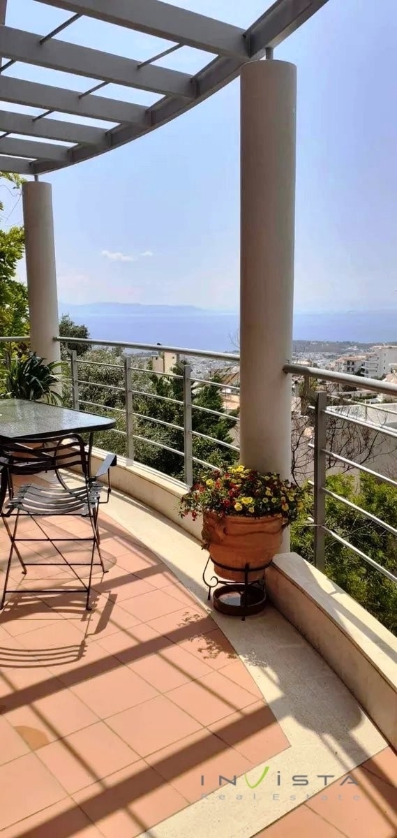 With sea view, a furnished detached house 225 sq.m. is available for sale on 5 levels with an internal elevator, constructed in 2000. It consists of living room, office, play room with exit to the garden, kitchen, four bedrooms (1 master) with oak floors, 3 bathrooms and wc. It has autonomous heating, fireplace, air conditioning, double glazing with electric shutters. It also has security door and alarm system. There is a storage room and an open parking space. Small pets are welcome. The mark on the map refers to the wider area and not to the exact location of the property. Sales price 1.080.000€. Visit our website www.invistarealestate.gr or contact the phone number 2109658520 for more information about the property or similar properties.
