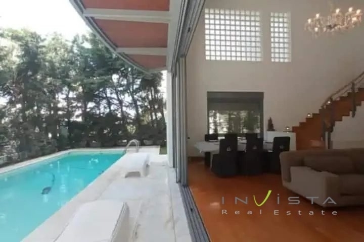A luxurious fully furnished maisonette 320 sq.m. is available for rent, featuring exclusive use of 200 sq.m. garden and 26 sq.m. swimming pool. The property boasts modern architecture with refined aesthetics and functionality that offer comfort and ergonomic living. Additionally, high-quality construction materials have been carefully selected throughout. The maisonette includes two spacious living rooms. The kitchen is of contemporary design, fully equipped with electrical appliances and thoughtfully planned to be both functional and elegant. The residence offers four comfortable bedrooms (2 master bedrooms), playroom, staff/auxiliary room, four bathrooms, and guest wc. The heating system operates with natural gas, ensuring stable indoor temperature. It also features fireplace, air-conditioning system and double-glazed windows that provide both soundproofing and thermal insulation. Oak wood flooring adds warmth and luxury, while the security door enhances the property's safety. Additional amenities include underground parking spaces and storage area of approximately 100 sq.m. Please note that the map pin refers to the wider area of the property. Rent €15,000 per month. For more information, or if you would like to view other properties, please contact Invista Real Estate at +30 210 9658520 or visit our website: www.invistarealestate.gr