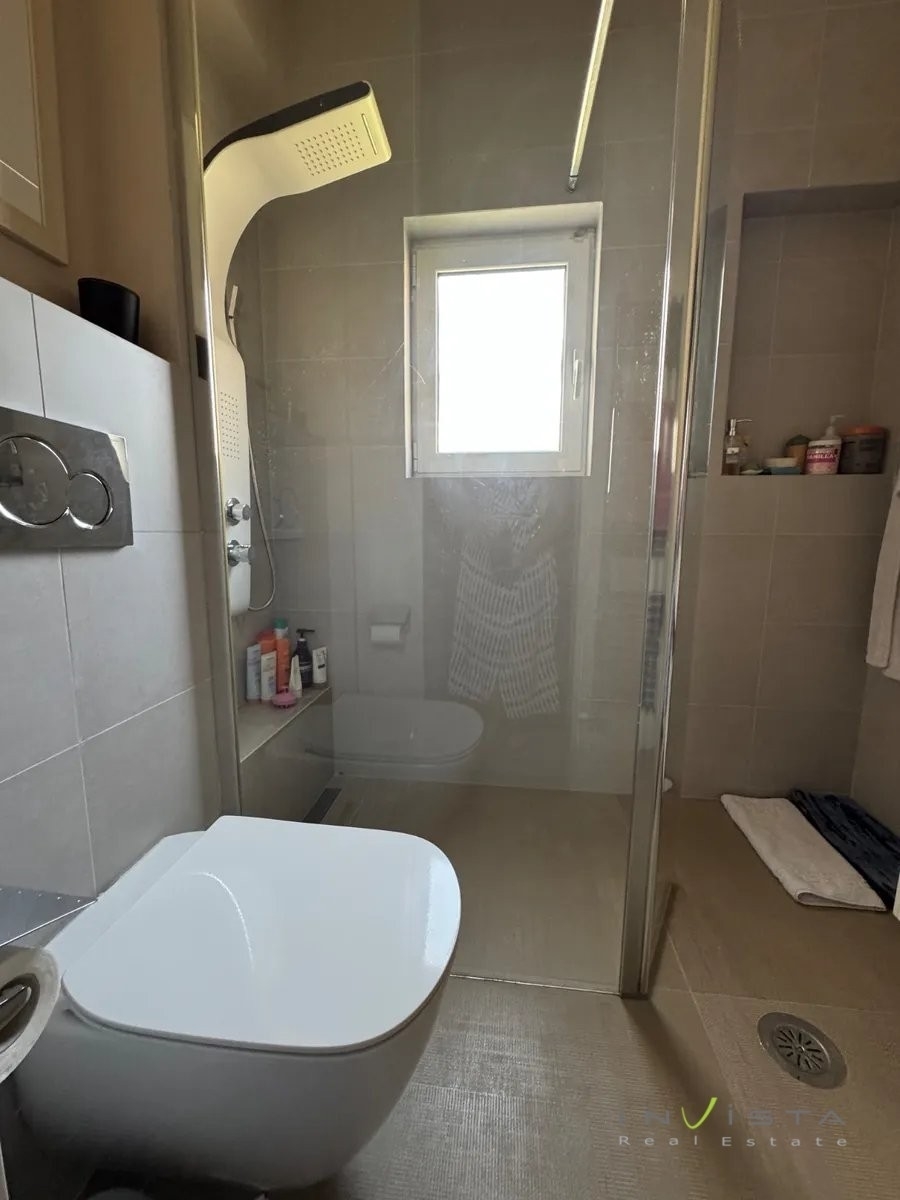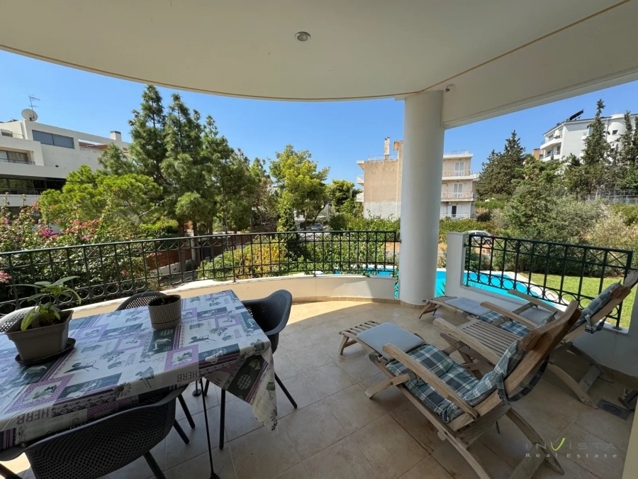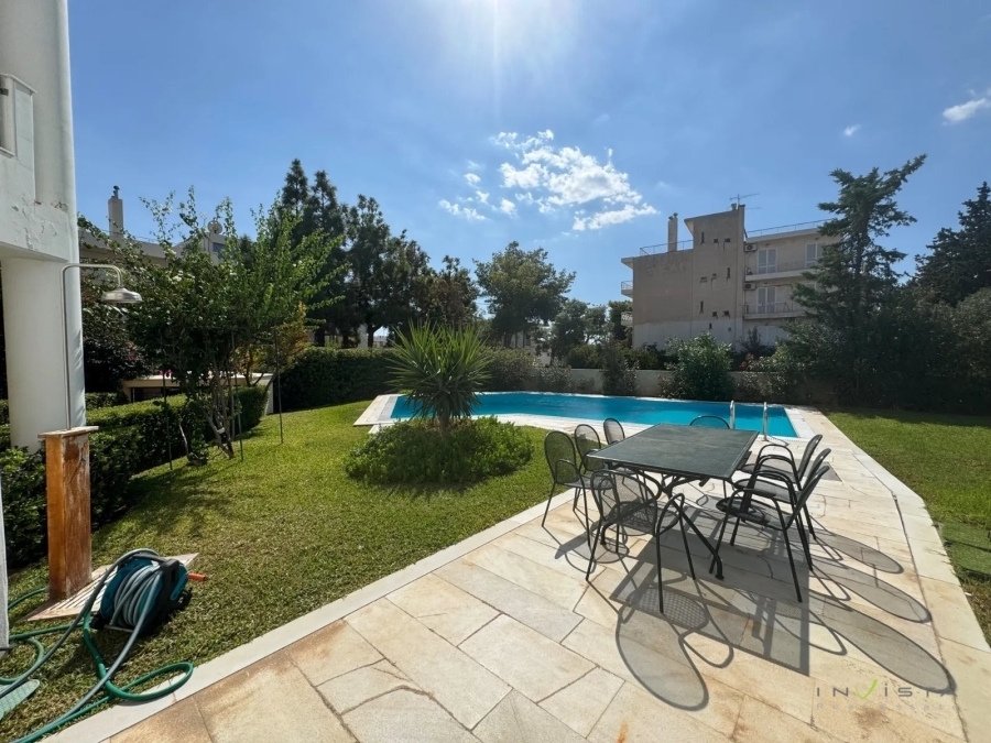 At a distance of 500m. from the sea, for rent a 160 sq.m. floor apartment, on the 1st floor, on a plot of 1,000 sq.m. with a swimming pool. The construction was done in 2001. It consists of comfortable living room, kitchen equipped with some electrical appliances (stove - oven - dishwasher), three spacious bedrooms (two masters) with oak floors, three bathrooms, wc and utility room. It has autonomous heating, fireplace, air conditioning, double glazing. It also has security door, solar water heater and alarm system. There is a storage room of 12 sq.m. and a car parking space. The mark on the map refers to the wider area and not to the exact location of the property. Rent 2,800€. Visit our website www.invistarealestate.gr or contact us at 2109658520 for more information about the property or similar properties.