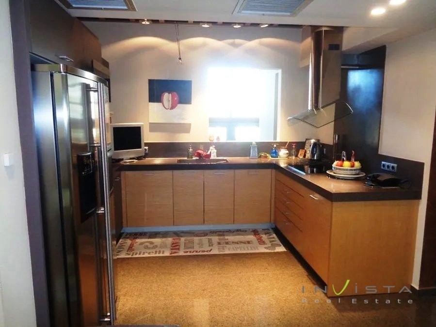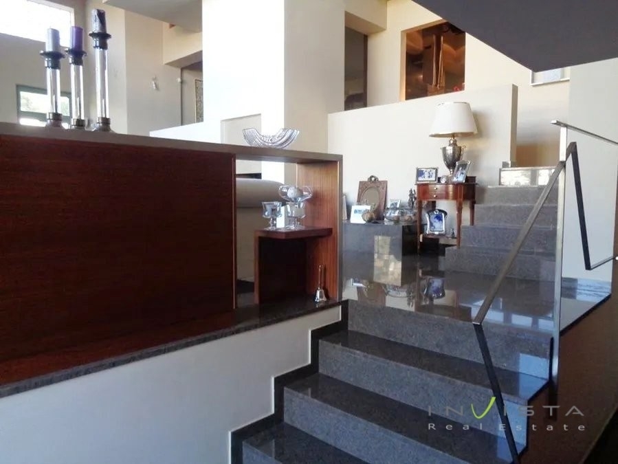 Saronida, luxurious detached house 680 sq.m. with partial sea view, on a plot of 910 sq.m. with swimming pool 40 sq.m. (possibility of becoming heated), constructed in 2005. Modern architecture, nice interior layouts, very good choices of materials. It consists of 3 living rooms, 2 dining rooms, 3 kitchens, 4 master bedrooms, 4 bathrooms with jacuzzi and wc. Play room for home cinema, laundry room. Autonomous heating, fireplace, central air conditioning system, bullet proof double glazed windows and security door. Internal elevator, excellent qualities of wooden and granite floors. Central alarm installation - HiFi - TV - satellite TV and security system. Also, there is drilling, storage rooms and 5 car spaces. It is located in a quiet and nicely landscaped area with easy access. The dot on the map shows the wider area and not the exact address. Sale price €1,880,000. For more information about this property or similar properties, please contact us at 210/9658520 or visit our website www.invistarealestate.gr